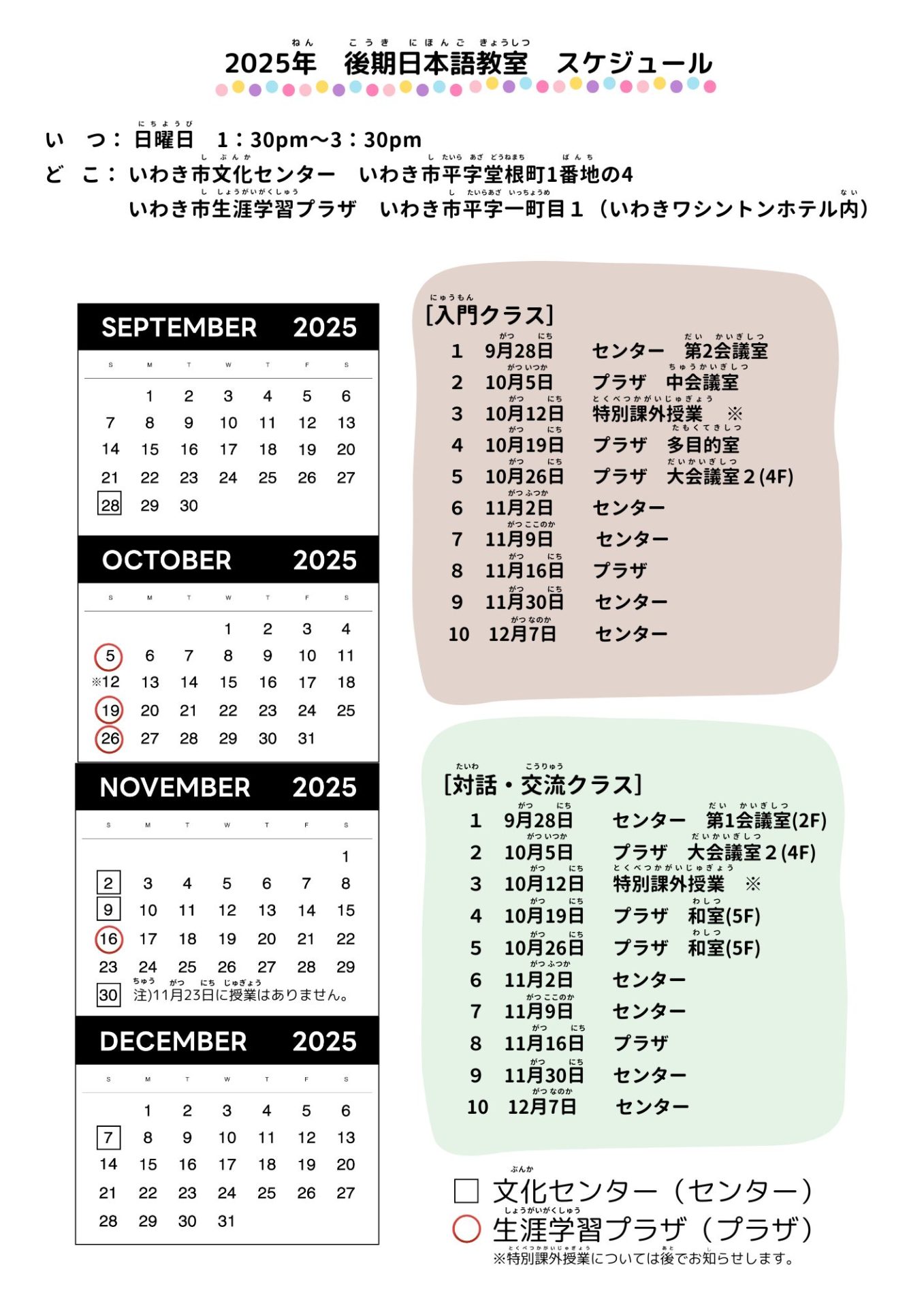 IIA 2025年日本語教室 後期 「入門クラス」「対話・交流クラス」がはじまります! 31/07/2025 03/09/2025 2025年後期日本語教室がはじまります。お申し込みはこちらへ 共有: Facebook で共有するにはクリックしてください (新しいウィンドウで開きます) Facebook クリックして X で共有 (新しいウィンドウで開きます) X 関連 Facebook postLINE