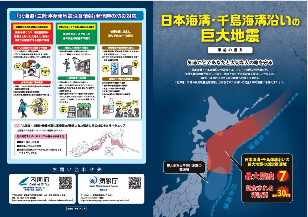 気象庁(きしょうちょう)が、「北海道(ほっかいどう)・三陸沖(さんりくおき)後発(こうはつ)地震(じしん)注意(ちゅうい)情報(じょうほう)」を 発表(はっぴょう)しました!