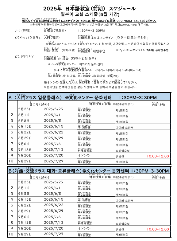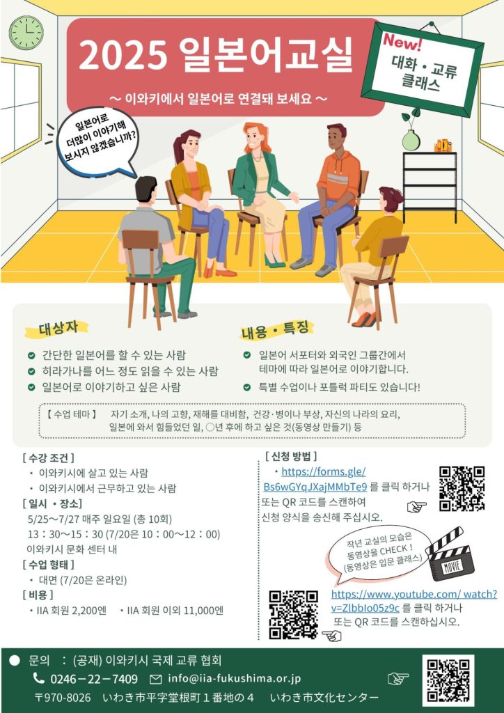 IIA イベント・講座 募集中 多言語情報 新着情報 2025년 일본어교실(5월개강)「입문 클래스」「대화・교류 클래스」는 신청이 마감됐습니다。 10/04/2025 28/05/2025 「입문 클래스」 「대화・교류 클래스」 이 글 공유하기: 페이스북에 공유하려면 클릭하세요. (새 창에서 열림) Facebook 클릭하여 X에서 공유 (새 창에서 열림) X 関連 Facebook postLINE