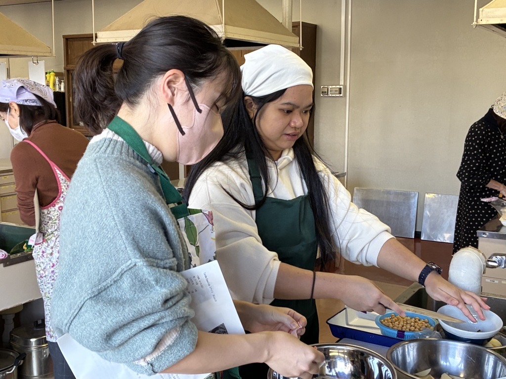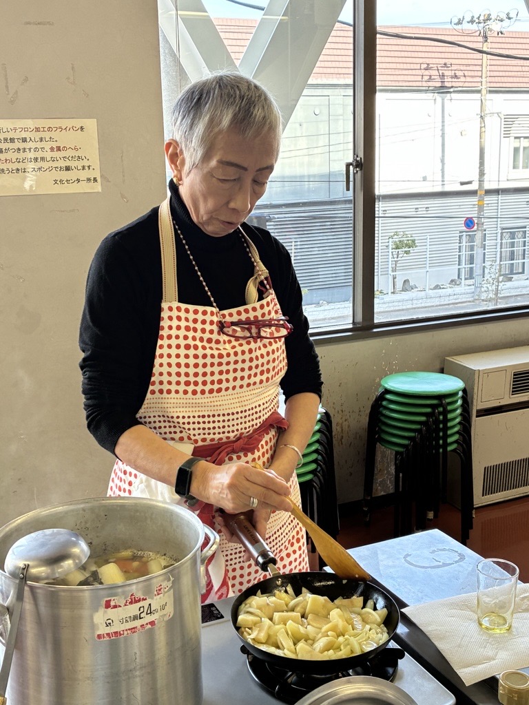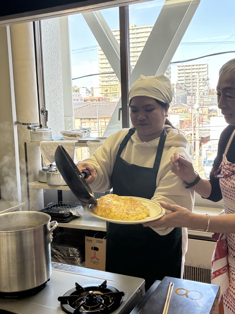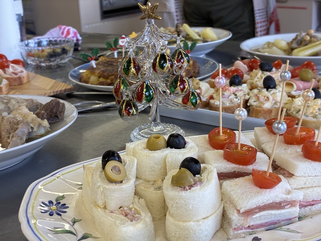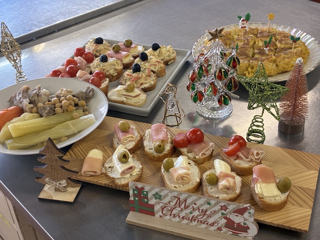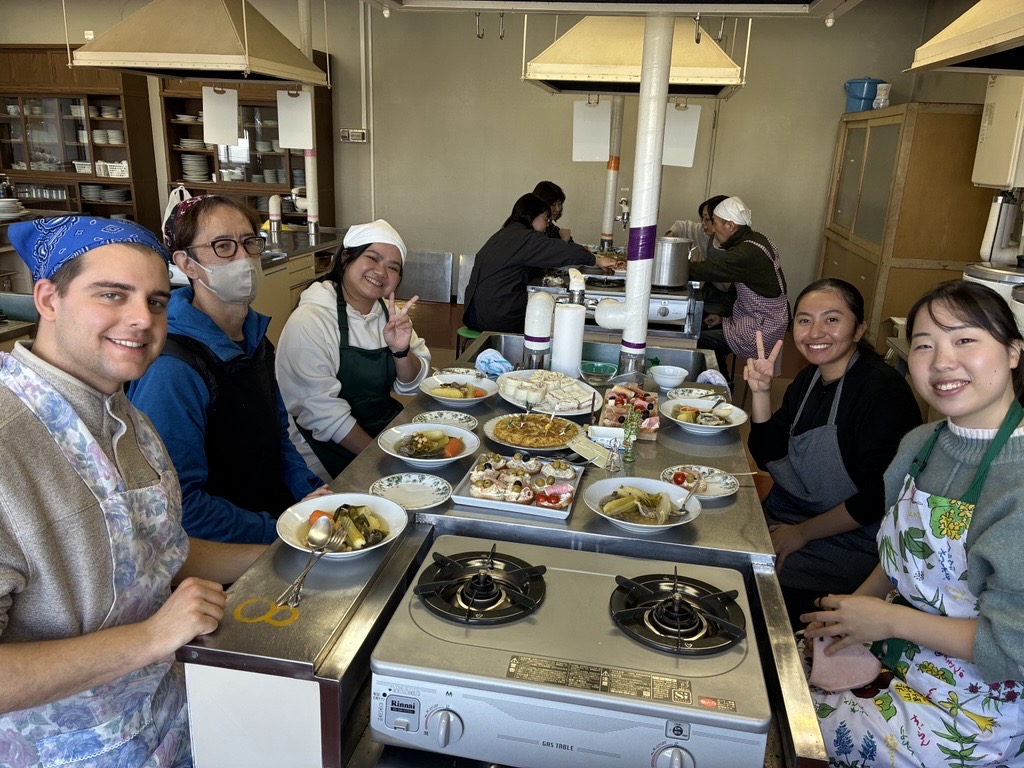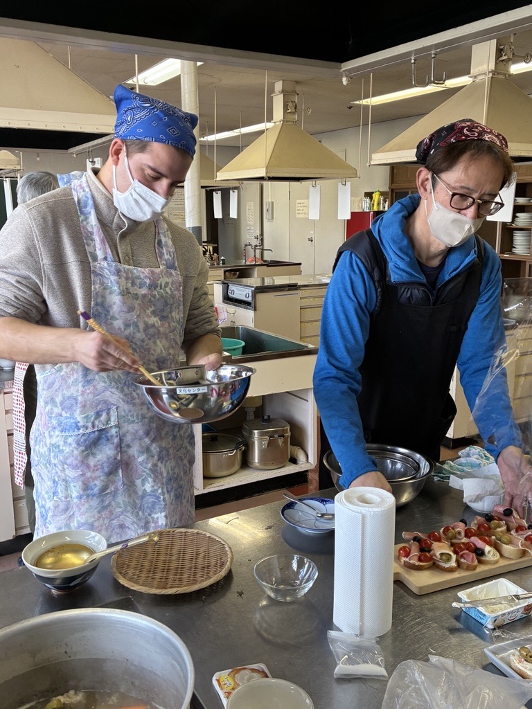 12월 13일(토), 구사노 야요이 씨를 강사로 초빙해 스페인 요리 교실을 개최했으며, 미국과 필리핀을 포함한 총 14명이 참가했습니다. 메뉴는 크리스마스에 딱 어울리는 화려한 3종류의‘카나페’를 비롯해, 닭고기·돼지고기·소고기 세 가지 고기와 큼직하게 썬 채소를 푹 끓여 소금만으로 심플하게 맛을 낸, 메인 요리이자 스프 역할을 하는 ‘코시드’, 그리고 달걀노른자를 듬뿍 사용한 디저트‘나틸라’였습니다. 또한 얇게 썬 감자와 양파를 넉넉한 올리브 오일로 조리한 뒤 달걀물을 넣고, 모양을 다듬어 가며 여러 번 뒤집어 부드럽고 촉촉하게 완성하는 스페인식 오믈렛은, 본고장의 조리법을 배우기 위해 특별히 메뉴에 추가했습니다. 스페인에 체류한 경험이 있는 외국인 참가자들은 “그래, 바로 이 맛이야!”라며 추억에 잠긴 모습이었습니다. 야요이 씨의 요리는 맛은 물론, 다채로운 색감과 플레이팅까지 완벽해 요리가 접시에 담기는 순간마다 공간의 분위기를 한층 더 살려주었습니다. 구사노 야요이 씨, 마음까지 설레게 하는 멋진 요리 교실을 열어주셔서 진심으로 감사드립니다!