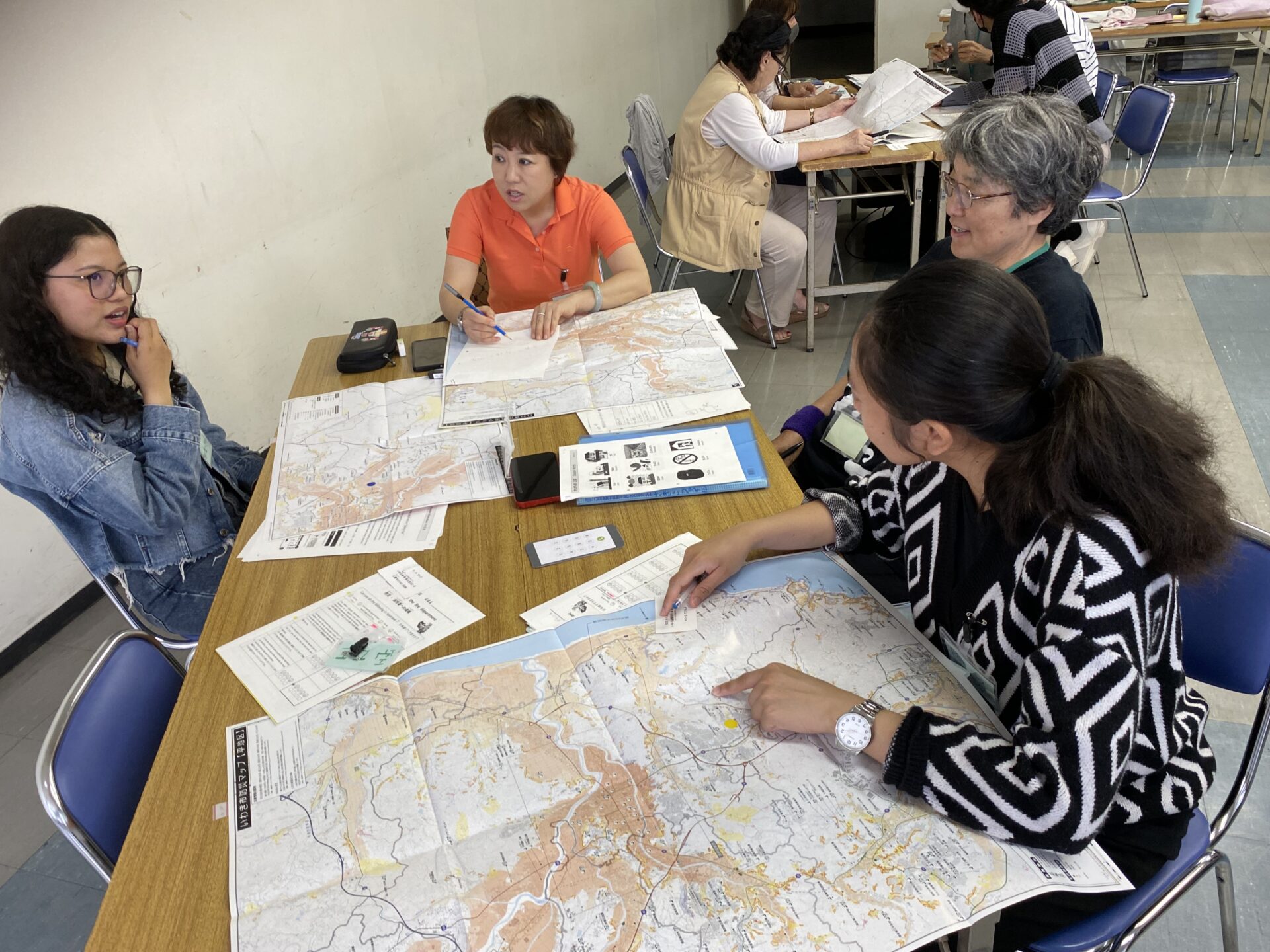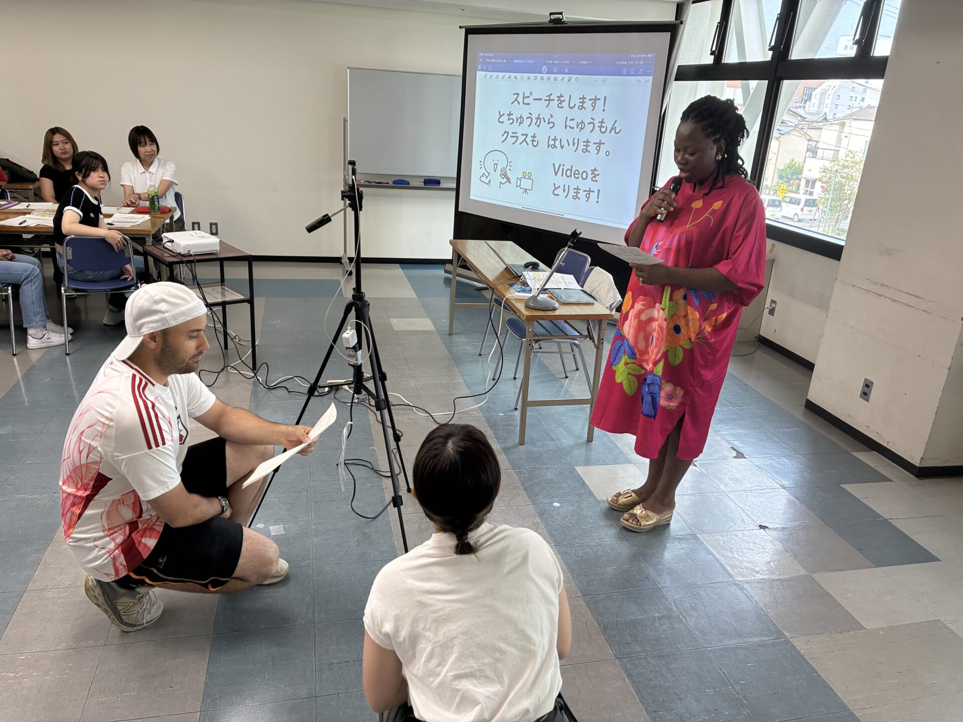 いわき市では、令和7年度から「対話・交流型」日本語教室を始めました。事前研修と毎回教室の前に行われる事前打ち合わせで、サポーターの役割を繰り返し学んだサポーターと学習者が最初はグループで、その後は全体でその日のテーマに応じた会話を楽しみました。