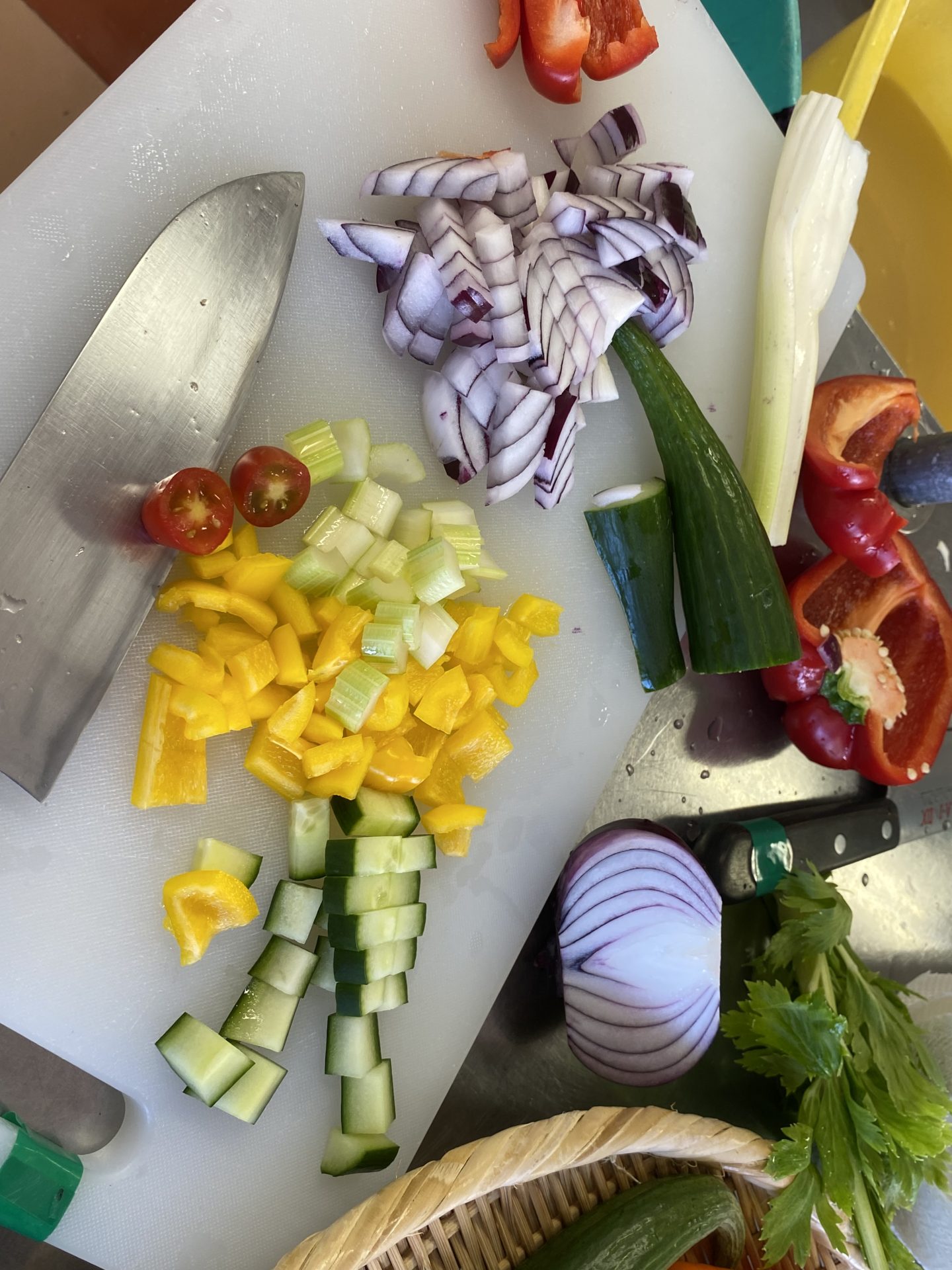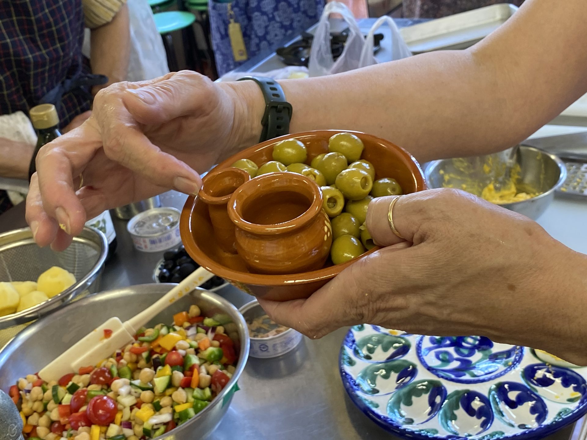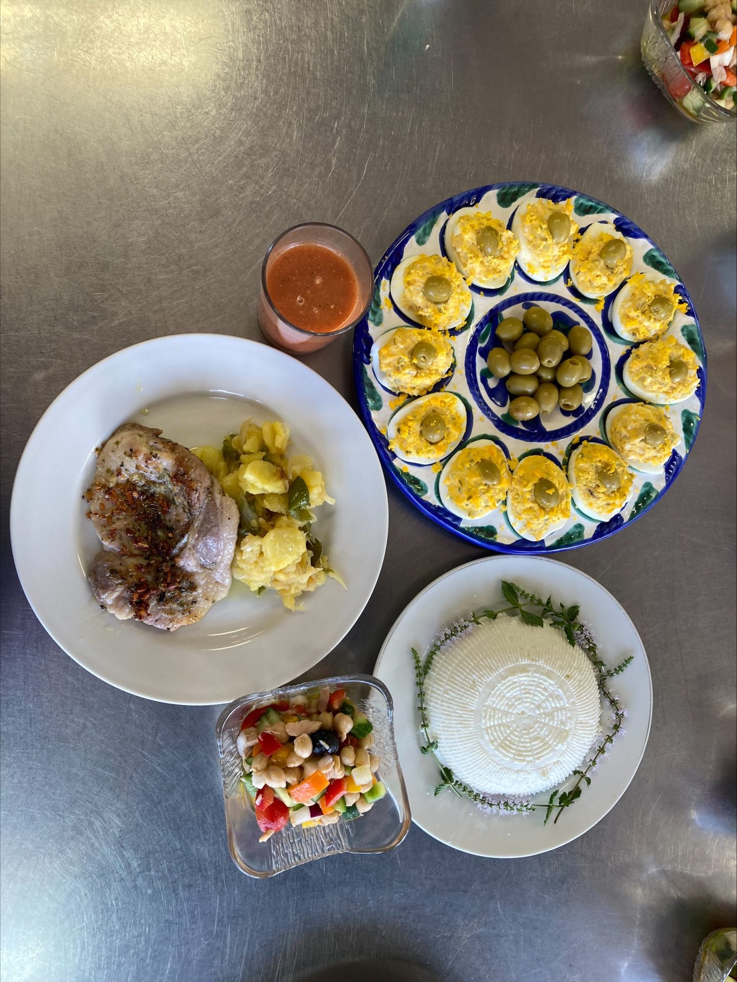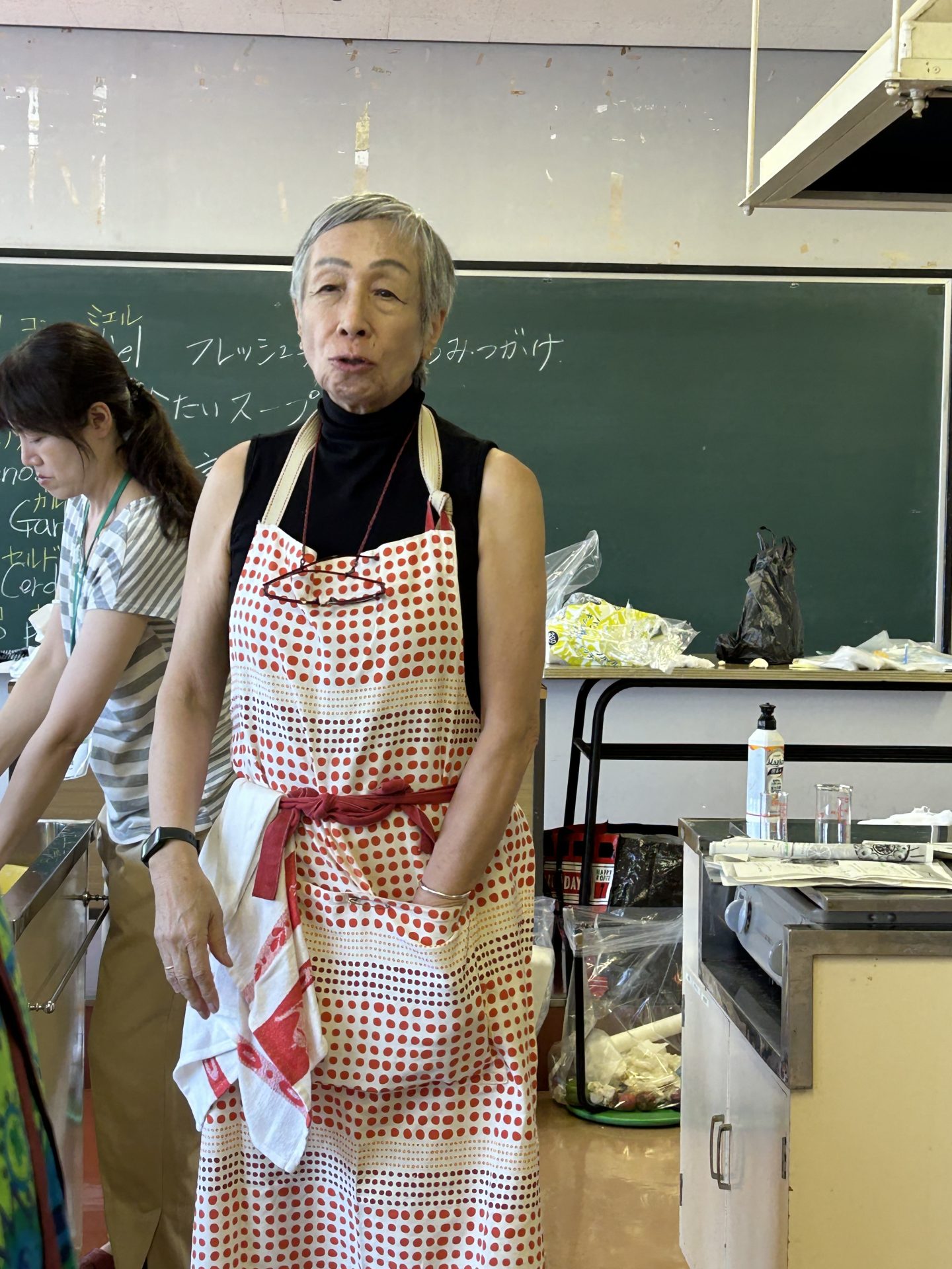 8月(がつ)1日(ついたち)(木(もく))、文化(ぶんか)センター(料理実習室(りょうりじっしゅうしつ))でスペイン料理教室(りょうりきょうしつ)を開催(かいさい)。草野弥生(くさのやよい)さん(内郷出身(うちごうしゅっしん)、グラナダ在住(ざいじゅう))から暑(あつ)い夏(なつ)にぴったりの5品(しな)を教(おし)えていただき、参加者(さんかしゃ)(14名(めい))はガスパチョ、ひよこ豆(まめ)のサラダ、ゆで卵(あまご)の詰(つ)め物(もの)、豚肉(ぶたにく)のアルプハラスタイルとじゃがいもの付(つ)け合(あ)わせ、フレッシュチーズのはちみつがけなど色鮮(いろあざ)やかな食欲(しょくよく)をそそる本場(ほんば)スペインの味(あじ)を堪能(たんのう)しました。
