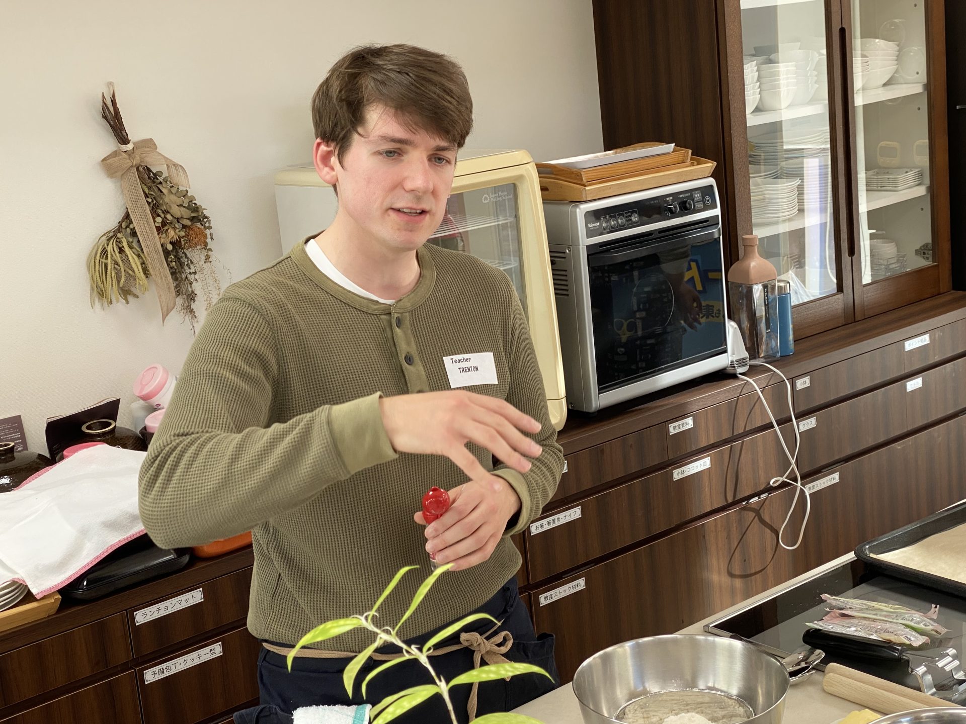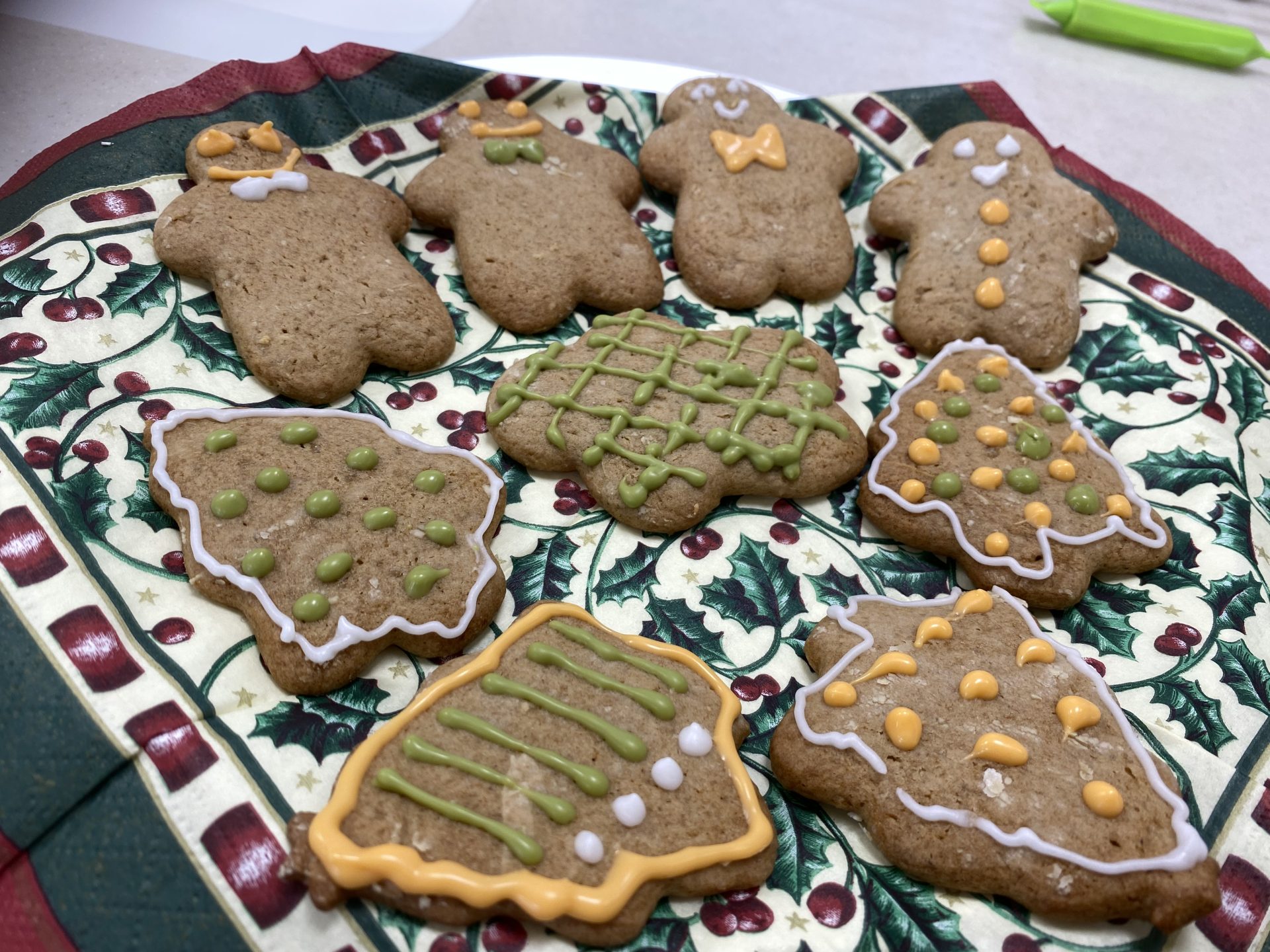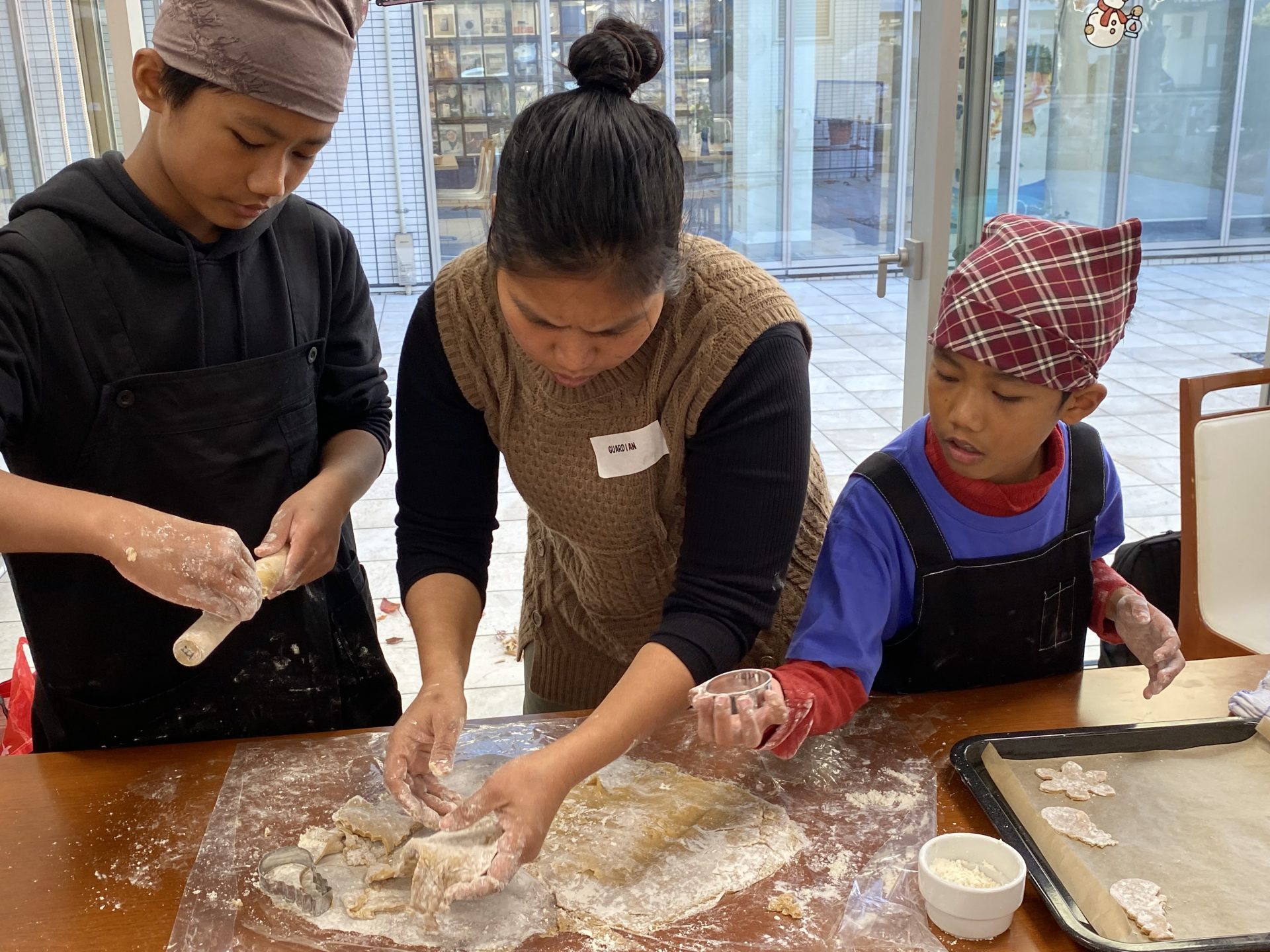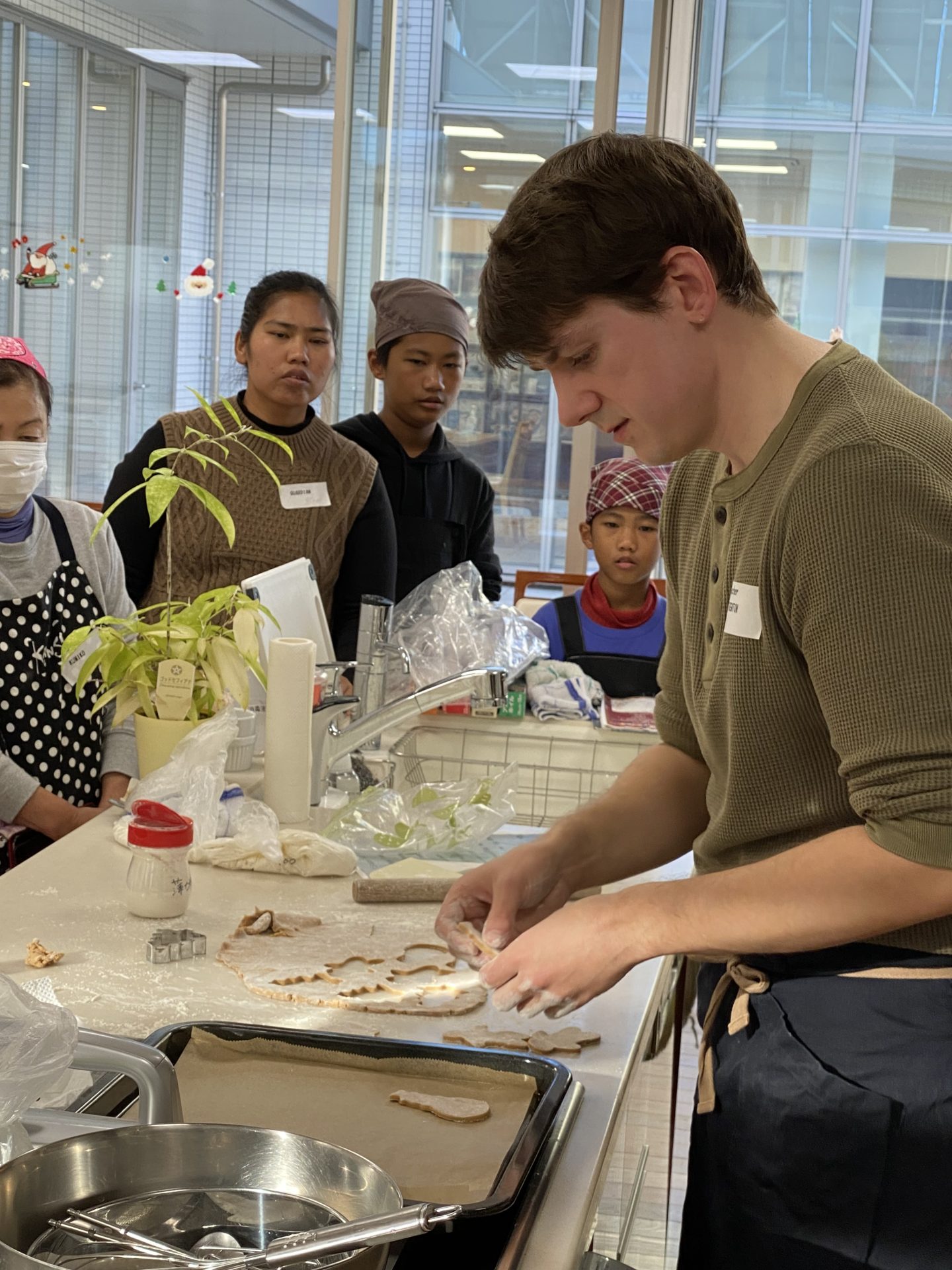 12月(がつ)15日(にち)(日(にち))、東部(とうぶ)ガス エコアで、「英語(えいご)で学(まな)ぼう ジンジャーブレッドクッキー」を開催(かいさい)し、12名(めい)(カナダ、ミャンマーを含(ふく)む)が参加(さんか)して、 カナダ出身(しゅっしん)のトレントン ヒルツ氏(し)から、講師(えいご)のオリジナルレシピによるジンジャーブレッドクッキーの作(つく)り方(かた)を英語(えいご)で教(おし)えていただきました。参加者(さんかしゃ)はレシピの英語(えいご)の聞(き)き取(と)り、生地(きじ)作(づく)り、チョコペンでの飾(かざ)り付(つ)けに集中(しゅうちゅう)していました。クリスマスのモチーフで型取(かたど)ったクッキーはしょうがの香(かお)りに、香(こう)ばしさが加(くわ)わった素朴(そぼく)な味(あじ)わいで、皆(みな)をひと足(あし)早(はや)いクリスマス気分(きぶん)にしてくれました。トレントン先生(せんせい)、何度(なんど)も試作(しさく)を重(かさ)ねて準備(じゅんび)をしてくださりありがとうございました。