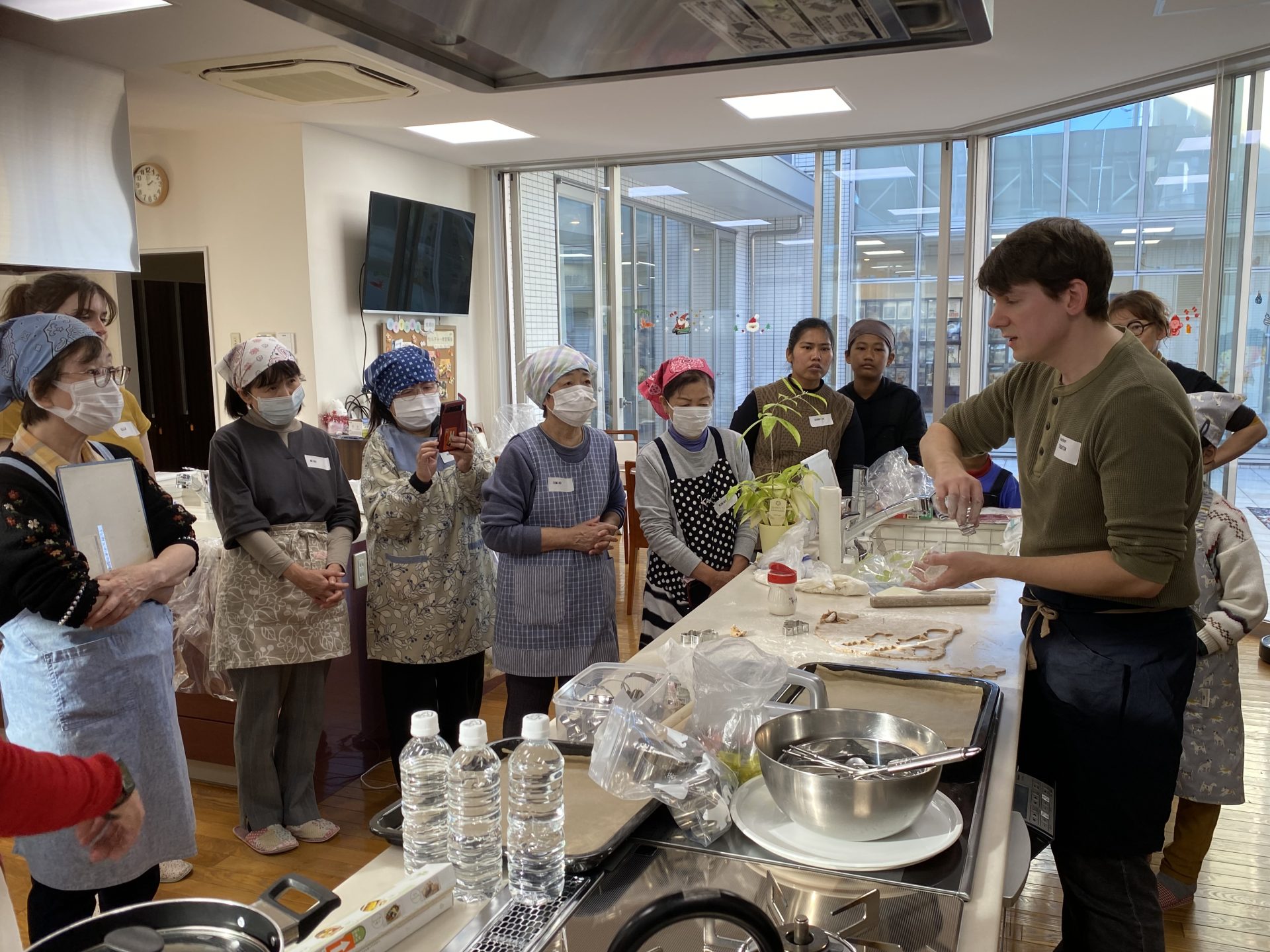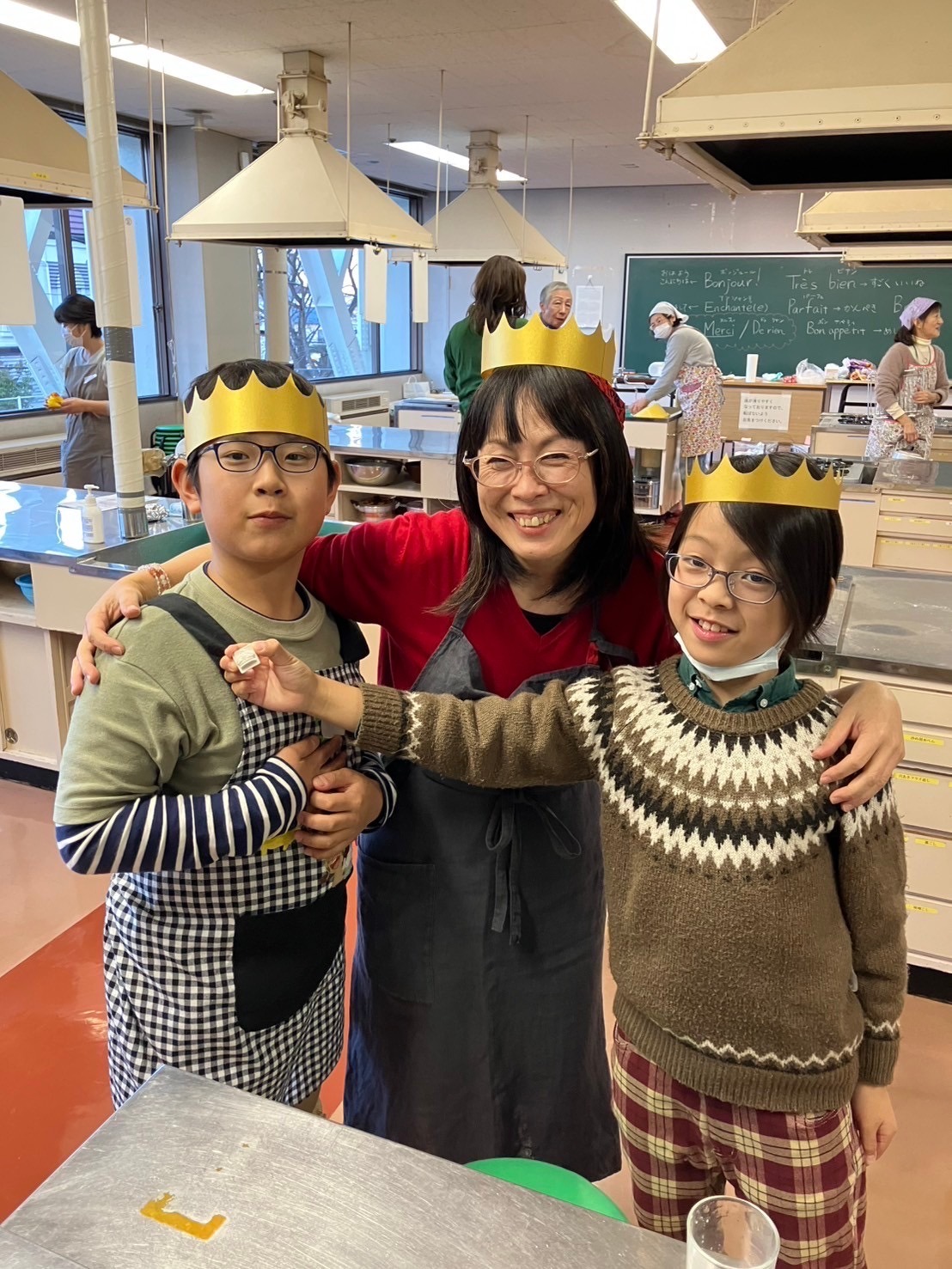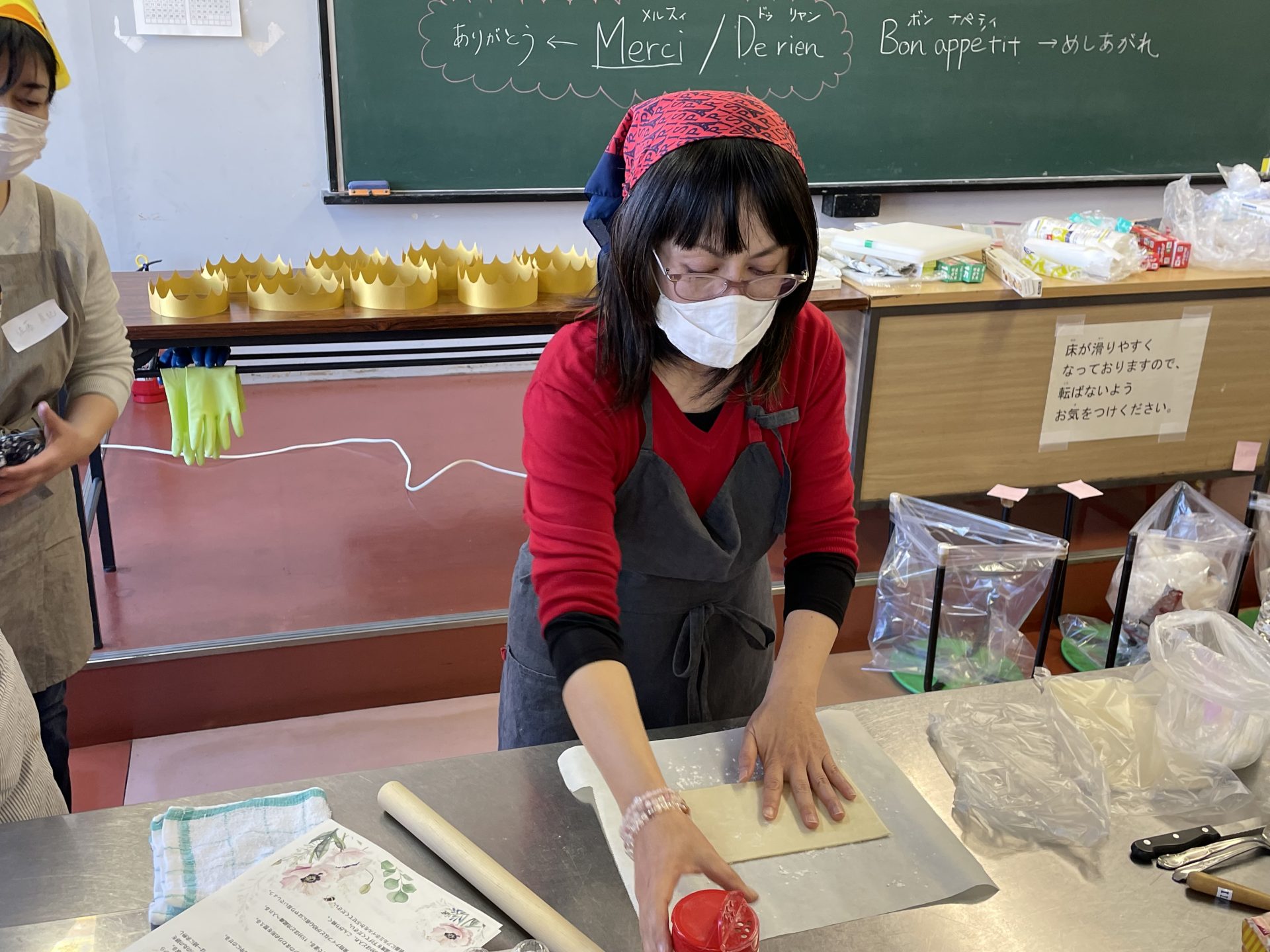 12月(がつ)8日(ようか)(日(にち))、「気軽(きがる)にフランス菓子(かし)を作(つく)ろう!」を開催(かいさい)し、フランスに居住歴(きょじゅうれき)のある渡邉久子(わたなべひさこ)氏(し)から、「ガレットデロワ(王様(おうさま)のケーキ」を教(おし)えていただきました。参加者(さんかしゃ)は小学生(しょうがくせい)やフランス、台湾(たいわん)出身者(しゅっしんしゃ)を含(ふく)む18人(にん)でした。講師(こうし)が家庭(かてい)で簡単(かんたん)にできるレシピを考(かん)えてくれたので、お子(こ)さん達(たち)でも楽(たの)しく作(つく)ることができました。焼(や)きあがったガレットデロワは、今(いま)までに味(あじ)わったことがない美味(おい)しさで、会場(かいじょう)は香(こう)ばしいアーモンドの香(かお)りと参加者(さんかしゃ)の幸(しあ)せな笑顔(えがお)に包(つつ)まれました。きっと、参加者(さんかしゃ)はそれぞれの家庭(かてい)で、このガレットを焼(や)き、家族(かぞく)を笑顔(えがお)にすることでしょう!久子(ひさこ)さん、素敵(すてき)なケーキを紹介(しょうかい)してくださりありがとうございました!