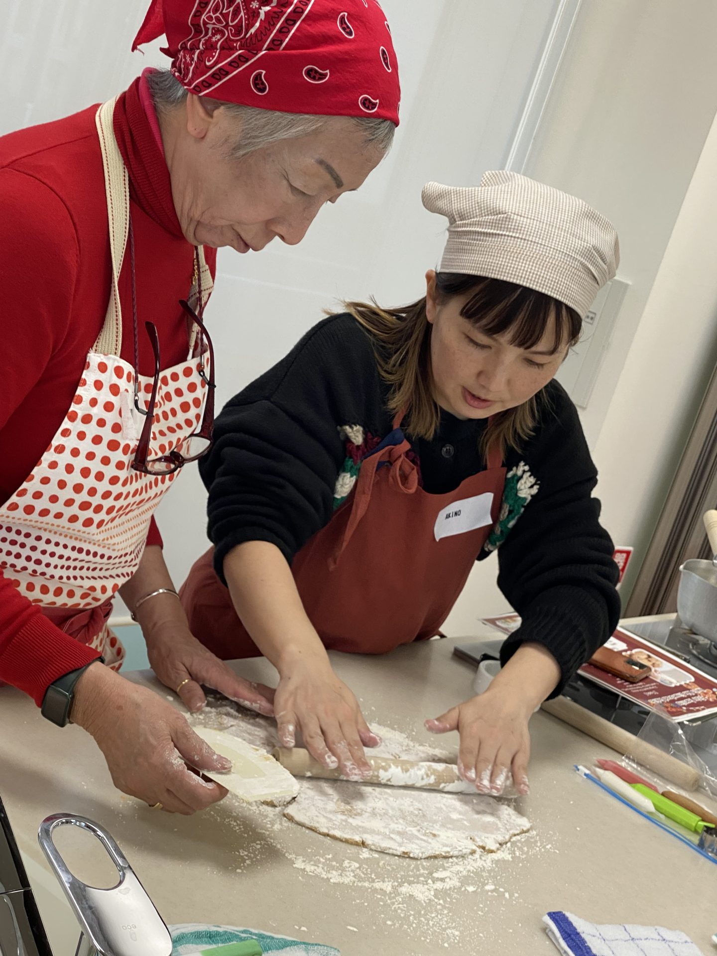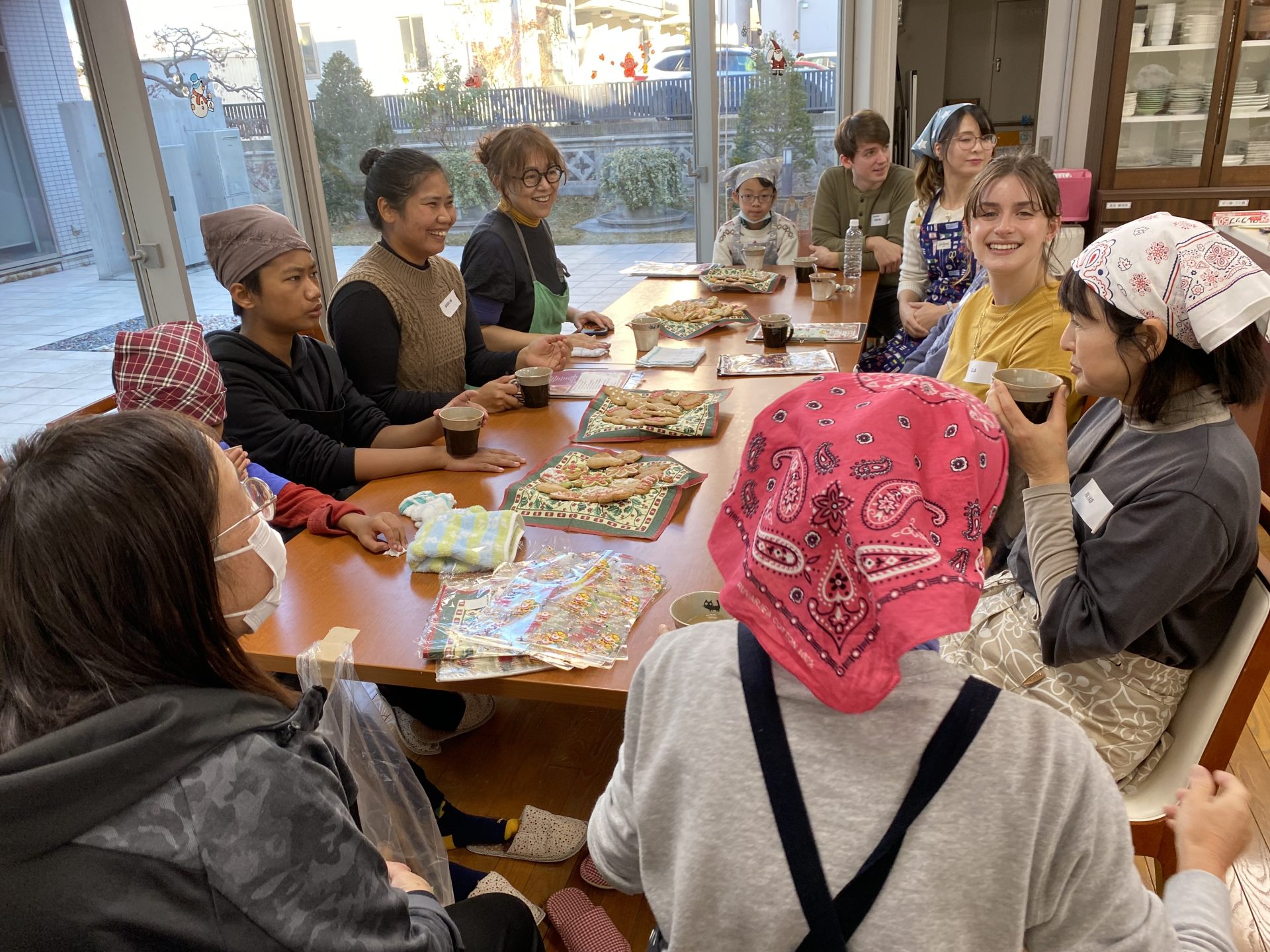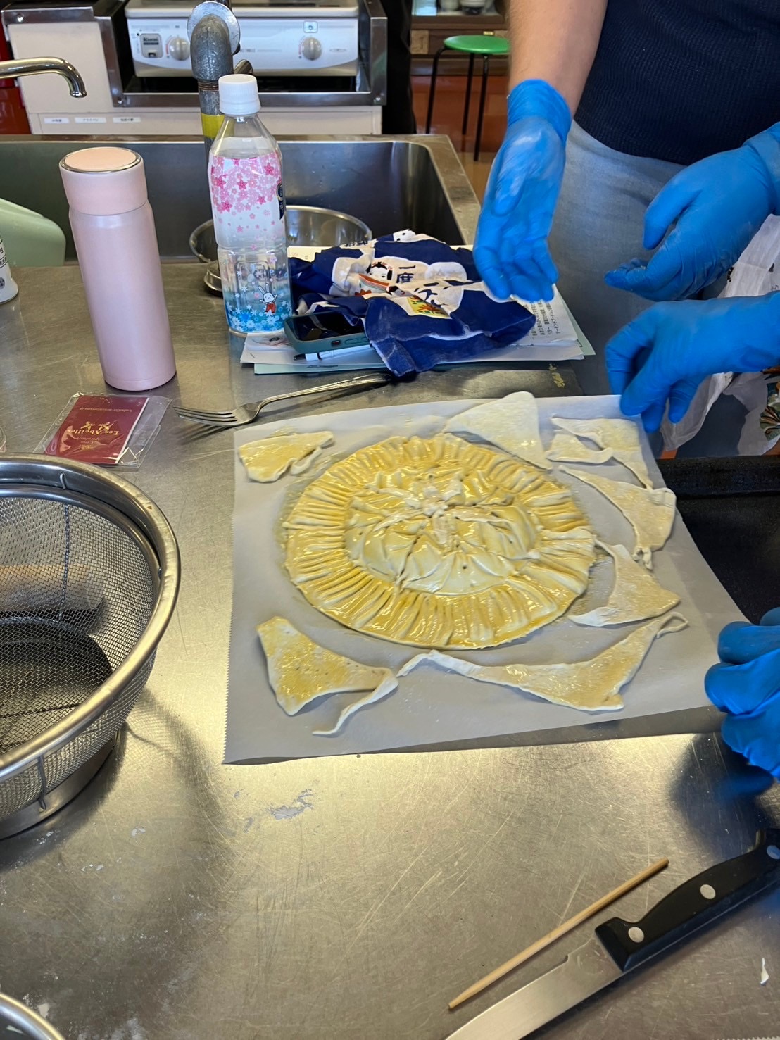 12月(がつ)8日(ようか)(日(にち))、「気軽(きがる)にフランス菓子(かし)を作(つく)ろう!」を開催(かいさい)し、フランスに居住歴(きょじゅうれき)のある渡邉久子(わたなべひさこ)氏(し)から、「ガレットデロワ(王様(おうさま)のケーキ」を教(おし)えていただきました。参加者(さんかしゃ)は小学生(しょうがくせい)やフランス、台湾(たいわん)出身者(しゅっしんしゃ)を含(ふく)む18人(にん)でした。講師(こうし)が家庭(かてい)で簡単(かんたん)にできるレシピを考(かん)えてくれたので、お子(こ)さん達(たち)でも楽(たの)しく作(つく)ることができました。焼(や)きあがったガレットデロワは、今(いま)までに味(あじ)わったことがない美味(おい)しさで、会場(かいじょう)は香(こう)ばしいアーモンドの香(かお)りと参加者(さんかしゃ)の幸(しあ)せな笑顔(えがお)に包(つつ)まれました。きっと、参加者(さんかしゃ)はそれぞれの家庭(かてい)で、このガレットを焼(や)き、家族(かぞく)を笑顔(えがお)にすることでしょう!久子(ひさこ)さん、素敵(すてき)なケーキを紹介(しょうかい)してくださりありがとうございました!