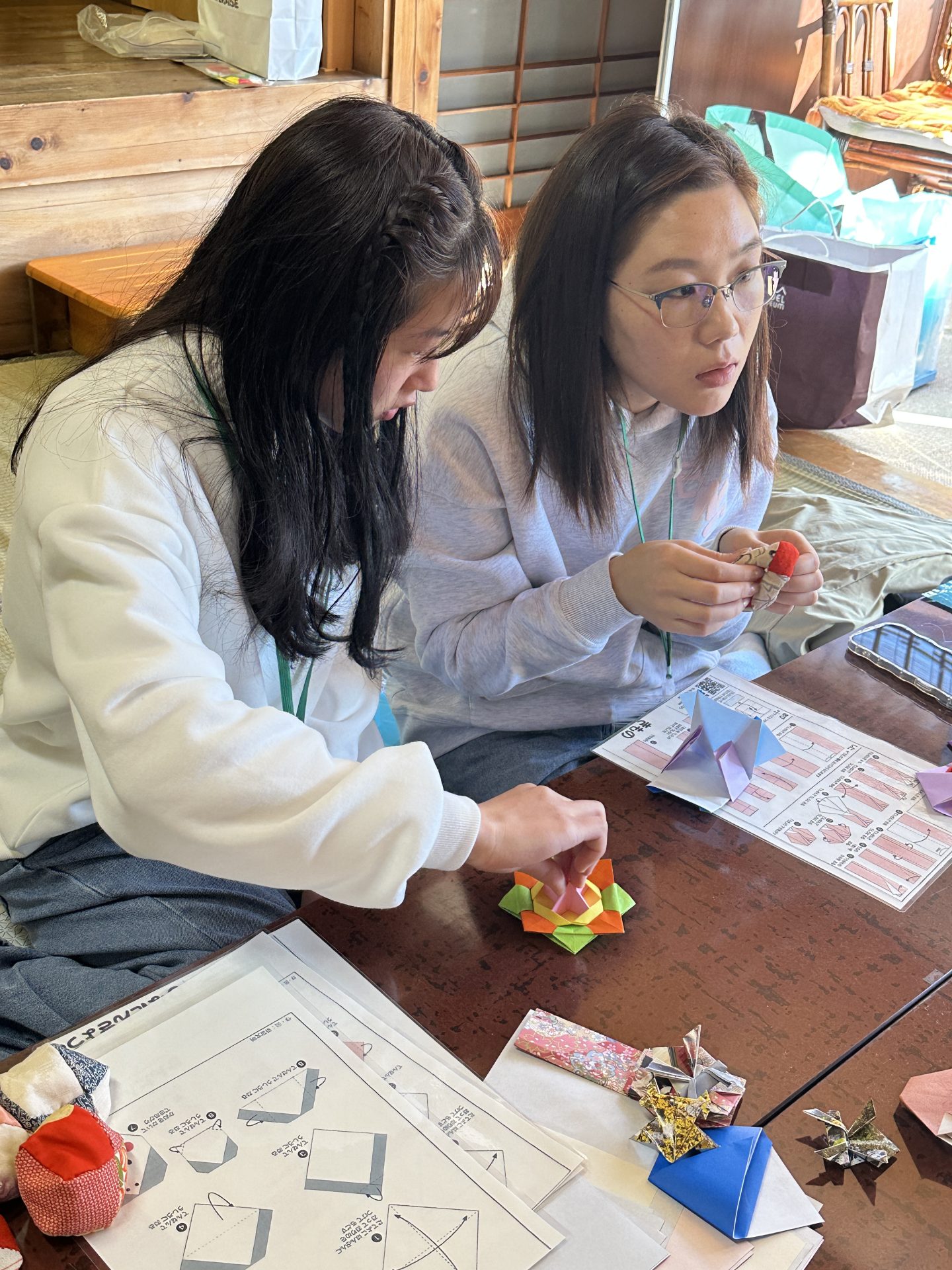 「水引(みずひき)体験(たいけん)」6月(がつ)9(ここの)日(か)(日(にち))水引(みずひき)アクセサリー作(づく)りを開(かい)催(さい)し、8名(めい)(韓国(かんこく)、アイルランド、ミャンマー、ウクライナー、アルゼンチン、日本(にほん))が参加(さんか)しました。参加者(さんかしゃ)は、好(す)きな色(いろ)の水引(みずひき)ひもを選(えら)び、遠藤(えんどう)和子(かずこ)氏(し)(内郷(うちごう)女性(じょせい)消防(しょうぼう)クラブ隊長(たいちょう)、防災士(ぼうさいし))から、あわじ結(むす)びや梅(うめ)結(むす)びを教(おそ)わり、自分(じぶん)好(ごの)みの色合(いろあ)いの水引(みずひき)ストラップを作(つく)りました。
